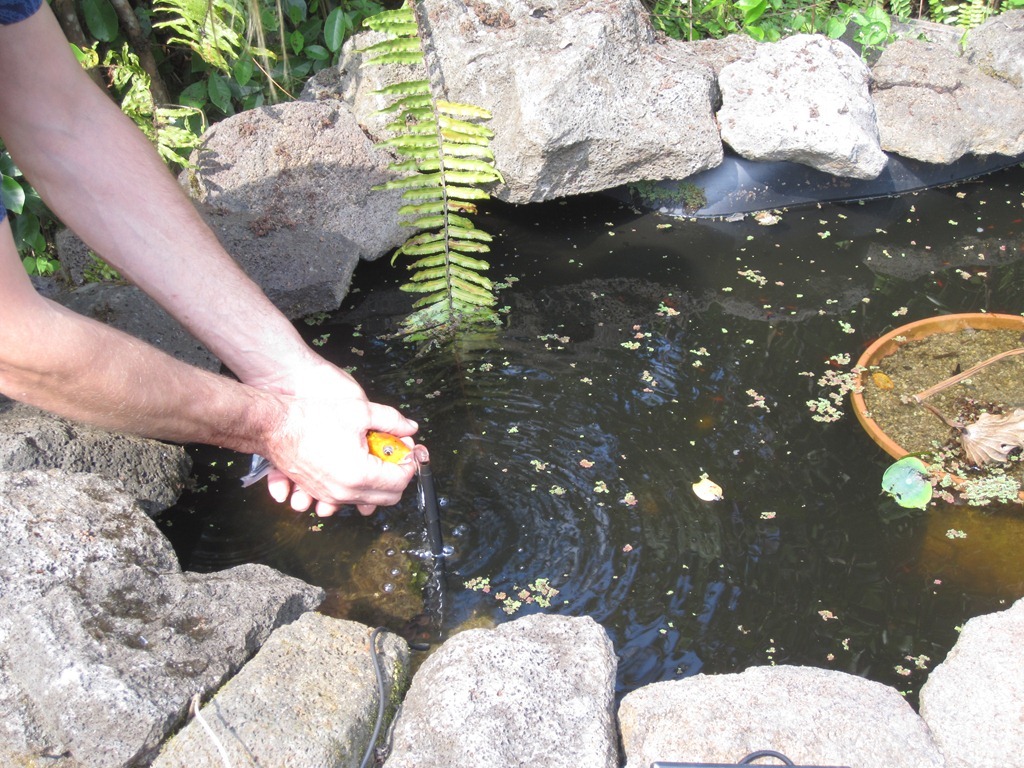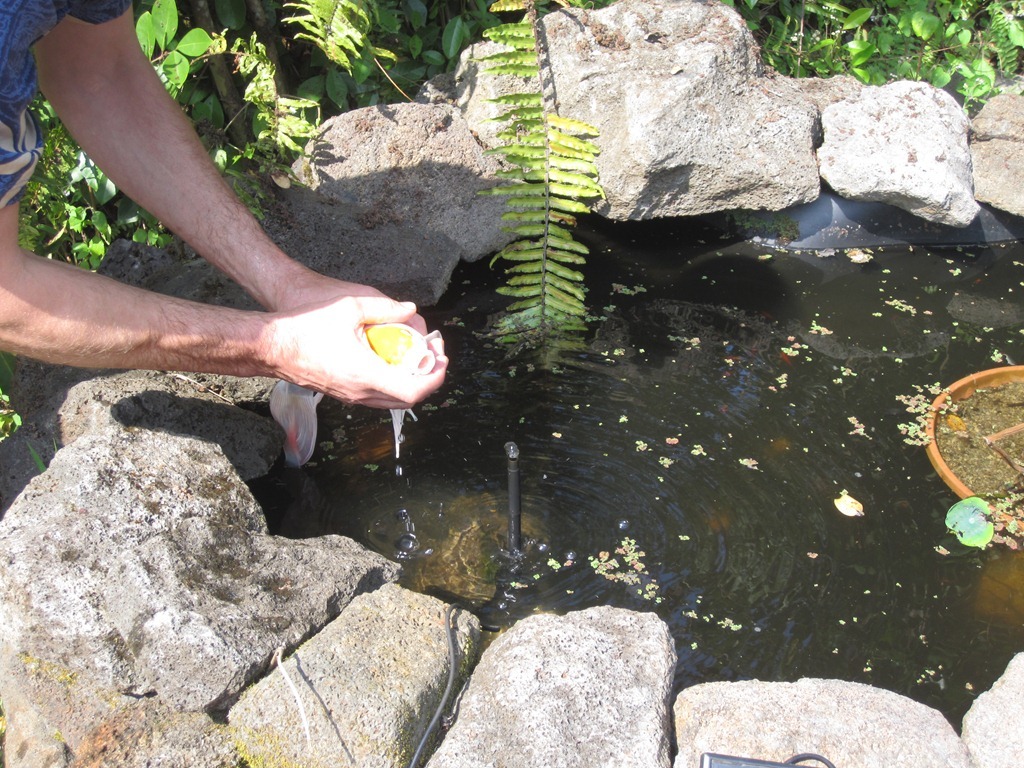 Here are some pictures of the Butterfly Koi being released into their new home.